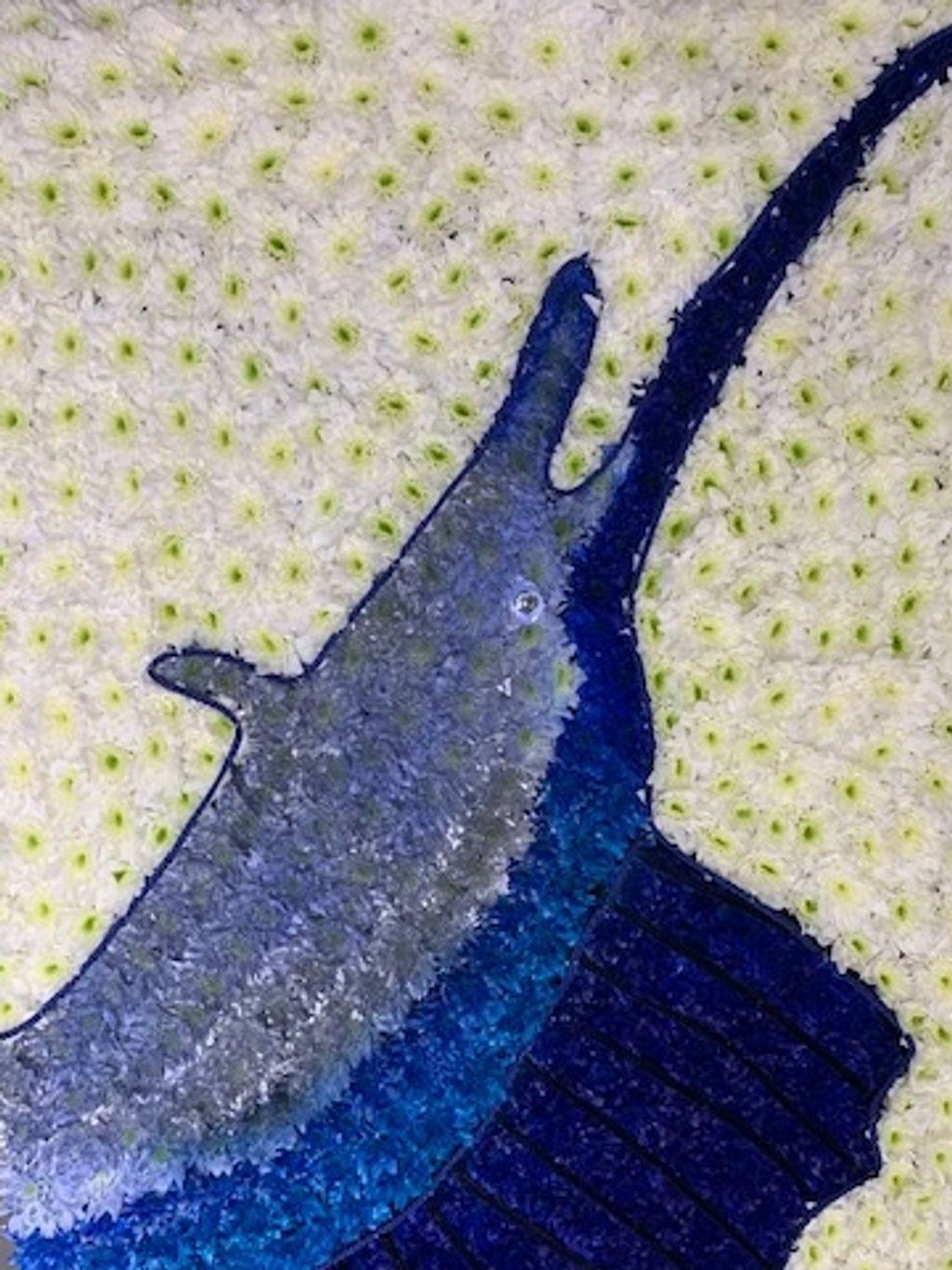 This beautiful fish floral tribute is designed on a 3x2 design sheet with a nice variety of colours to match the distinct colour of the blue marlin fish.
